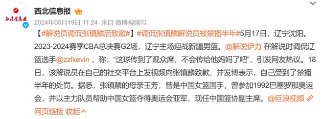 實際上這種事情也不止發(fā)生過一次,之前還是咪咕承接CBA網(wǎng)絡直播的時候,也有一些解說嘲諷張鎮(zhèn)麟全靠他的母親王芳上位,因此被遼寧球迷投訴并且丟了工作。
